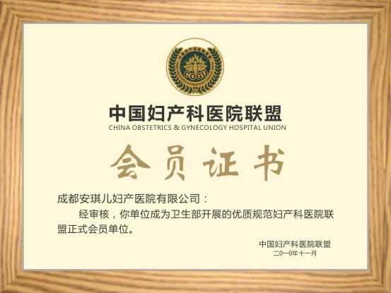 中國婦產科醫(yī)院聯(lián)盟會員證書