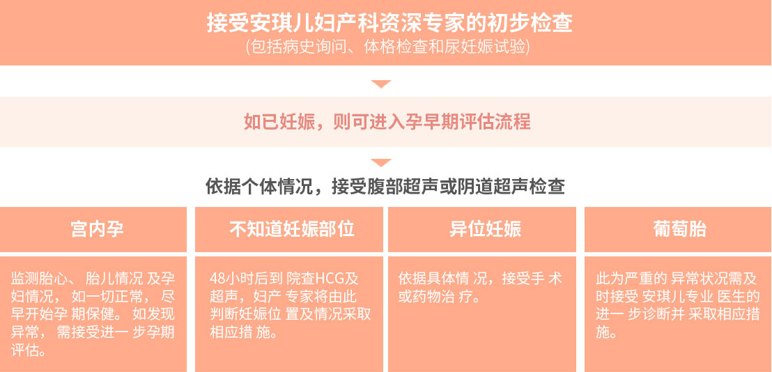 安琪兒早孕門診根據(jù)英國成熟經(jīng)驗,結(jié)合本地大量孕早期臨床案例,建立完善的孕早期醫(yī)療臨床路徑,對孕早期胚胎發(fā)育6大關(guān)鍵指標(biāo)嚴(yán)格